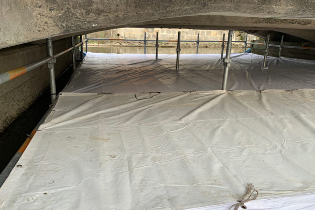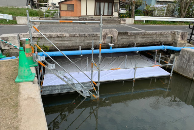 土木足場とは、土木関連工事において仮設足場ブラケットを使用する工事全般で必要となる足場です。防波堤工事・砂防工事・えん堤工事・擁壁工事・橋梁基礎工事・点検補修作業などでこの足場が組まれます。